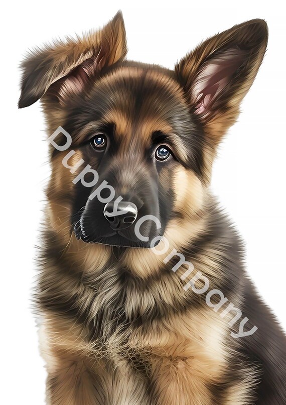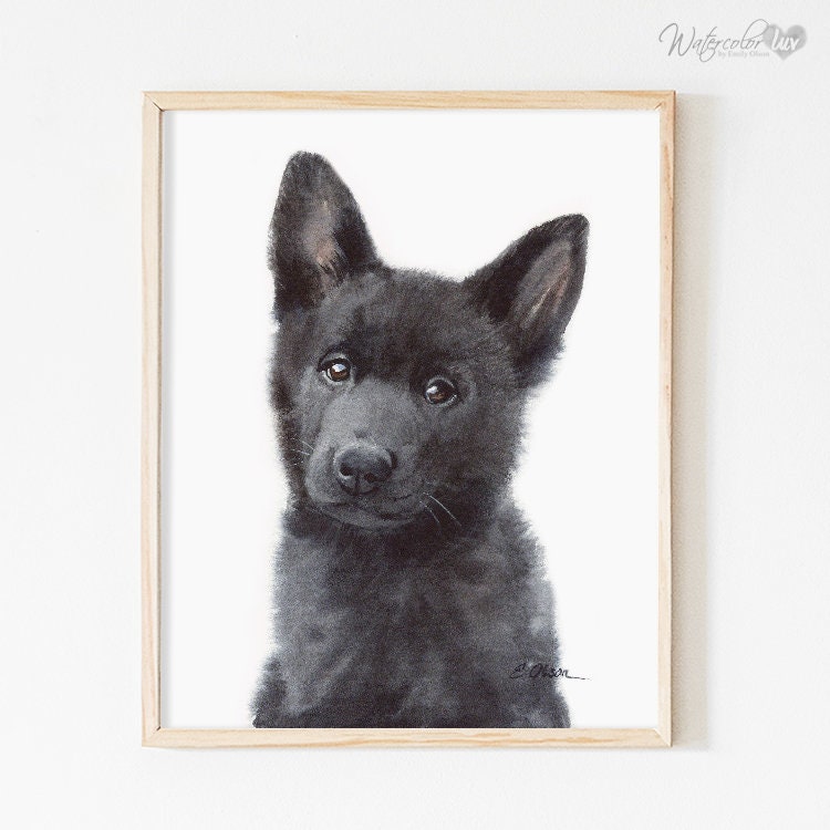 Chiot daquarelle, berger allemand noir, impressions de chiot ...