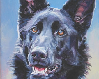 ORIGINAL Aquarelle Peinture de chien de berger allemand noir ...