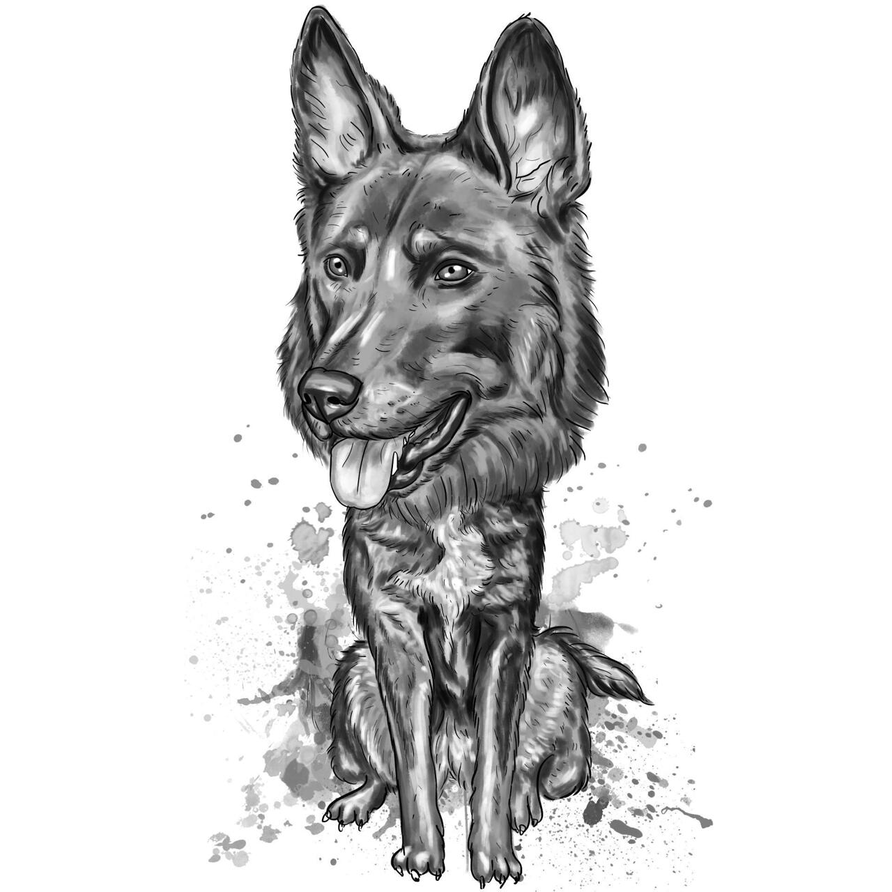 Portrait complet du corps au fusain de chien de berger allemand en ...
