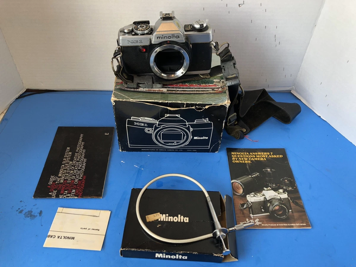 MINOLTA XG-1 CAMERA WITH BOX AND MANUAL AND CABLE RELEASE AS IS