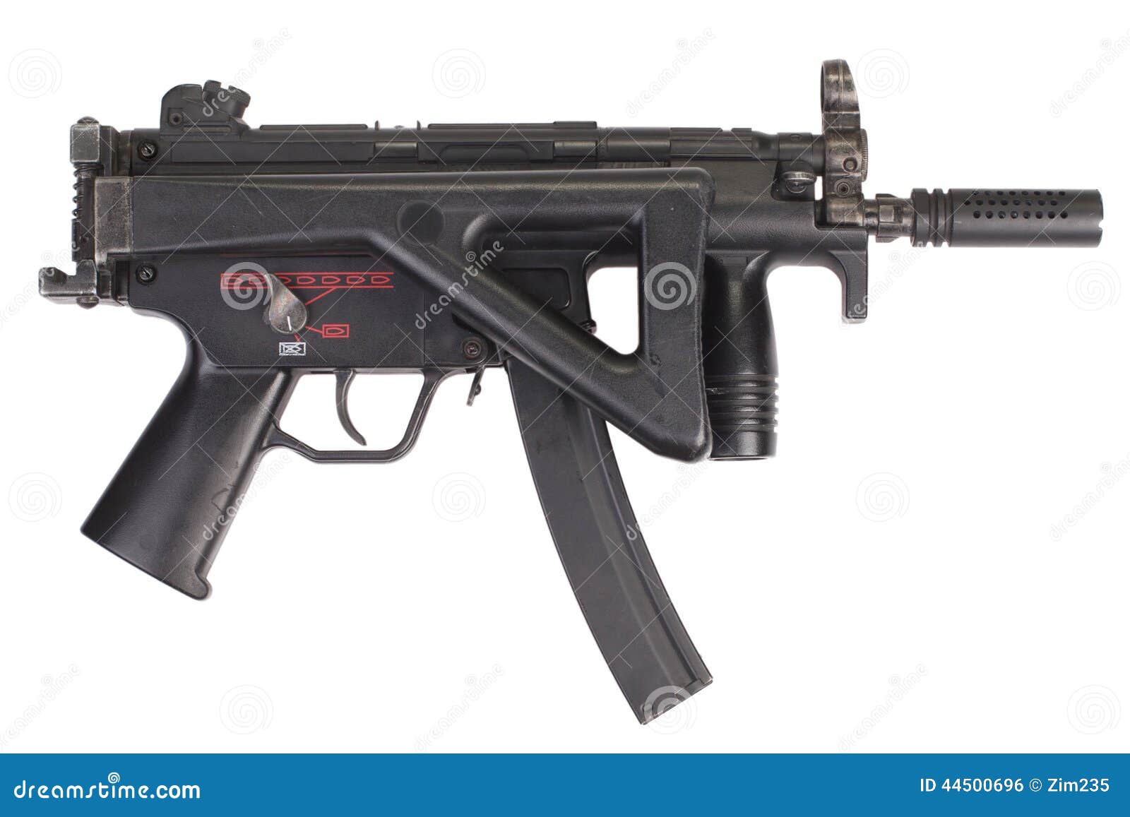 Mitraillette MP5 Avec Le Silencieux Photo stock - Image du blanc ...
