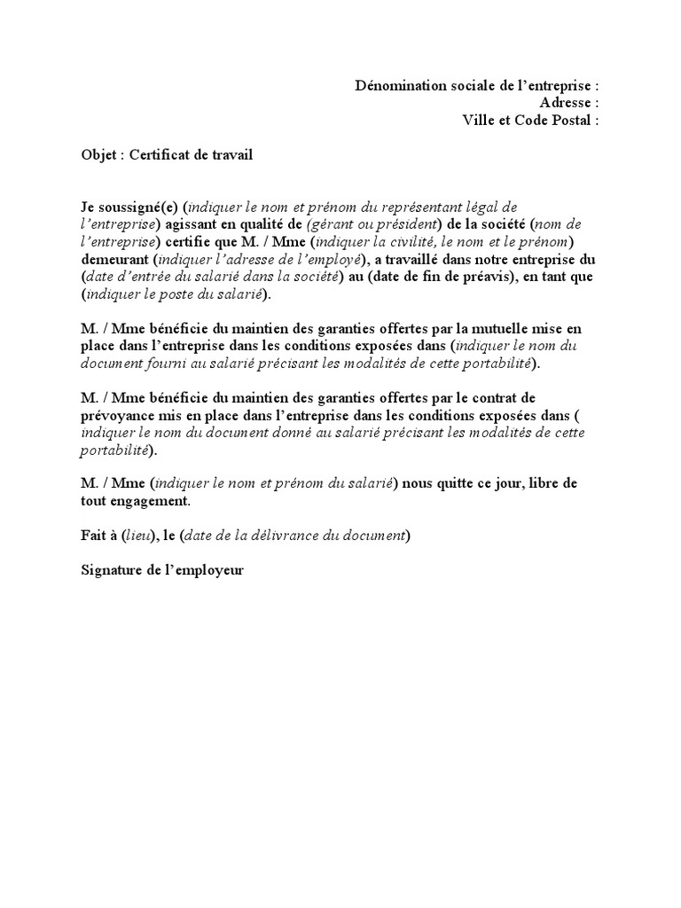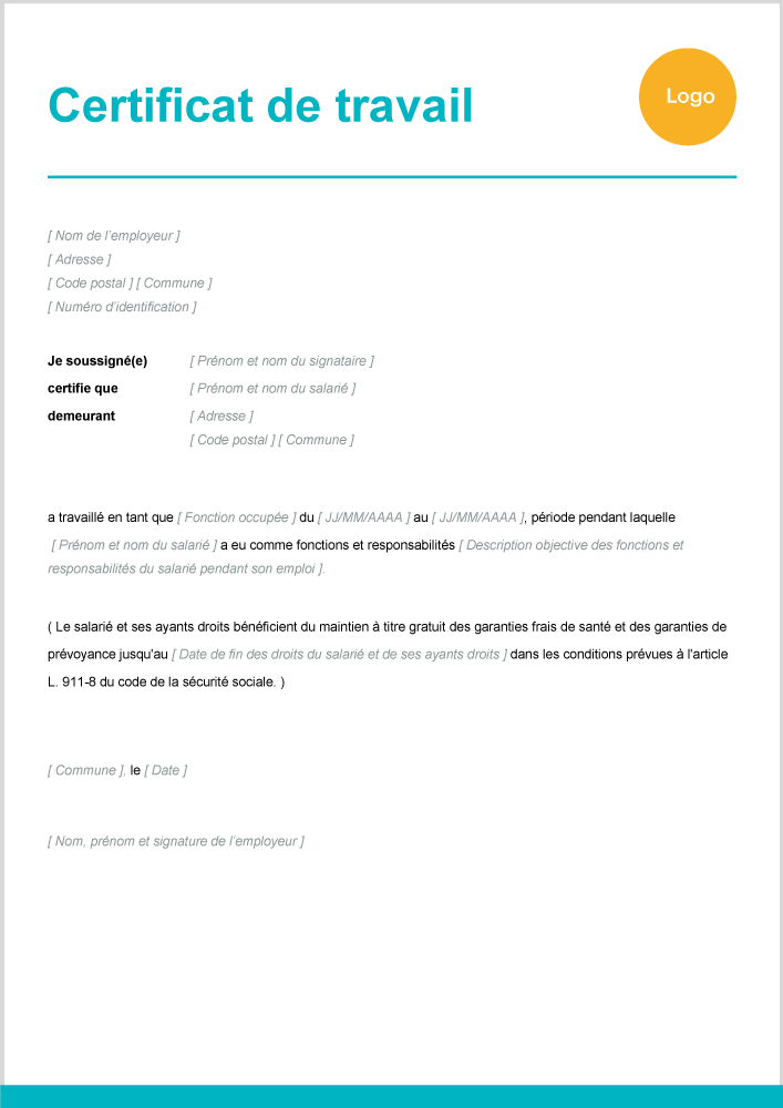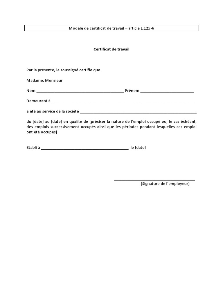 Certificat/Attestation de Travail - Modèle Word et PDF