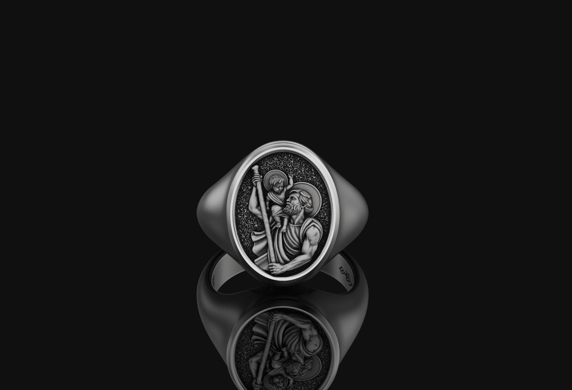 925 Silver St Christopher Mens Ring Religious Gift, Faith Jewelry Mens Accessory Womens Silver Signet Ring Unisex Silver Ring Christmas - Etsy