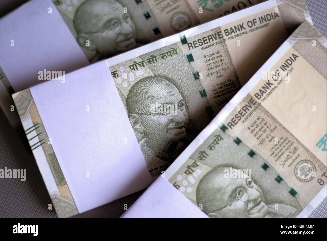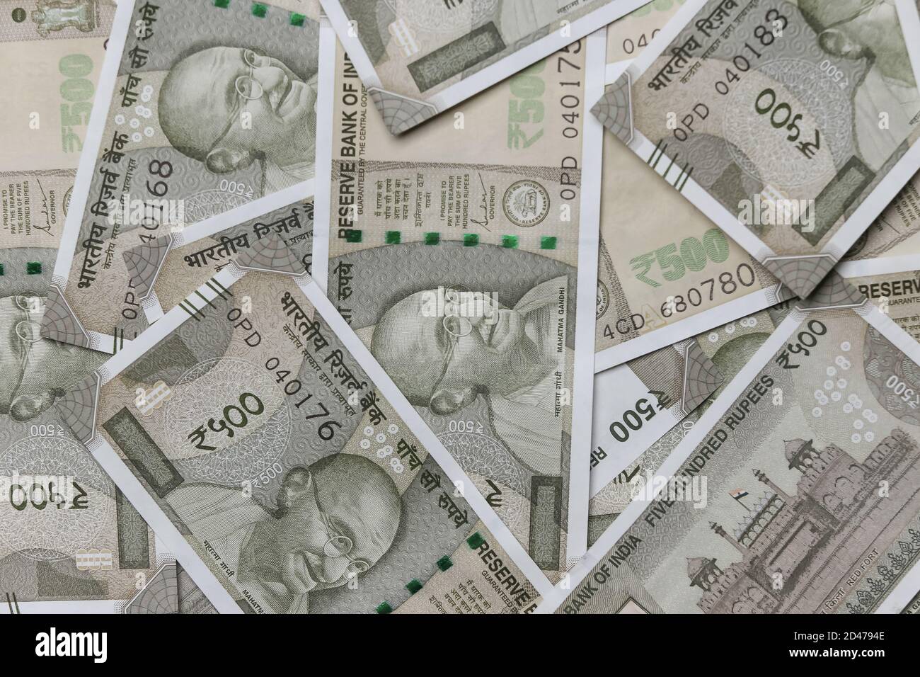 Les billets de banque indiens de cinq cents roupies. Les cadres de monnaie indienne. Liasses de roupies indiennes. Focus sélectif Photo Stock - Alamy