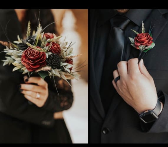 Gothic PROM FLOWERS Wedding Wood Flower Bouquet, Dark Red/burgundy ...