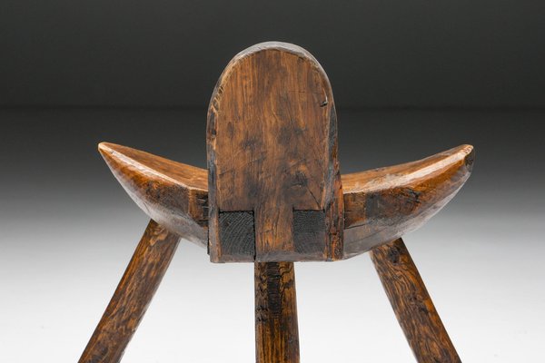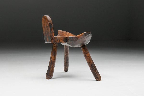 Tabouret Trépied Wabi Sabi Rustique avec Motif Grain de Bois, 1940s en vente sur Pamono