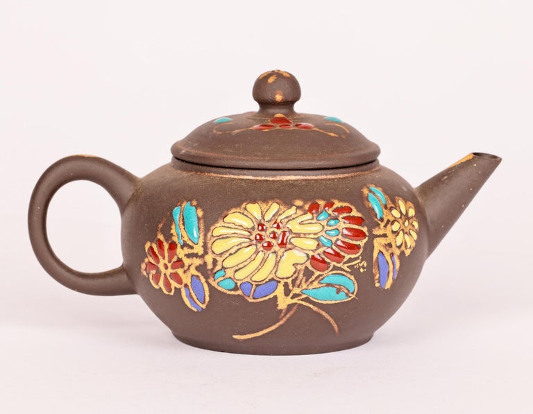 Chinese Miniature Yixing Teapot with Applied Floral Enamel Designs For Sale at 1stDibs | vintage yixing teapot, antique zisha teapot, clay teapot designs