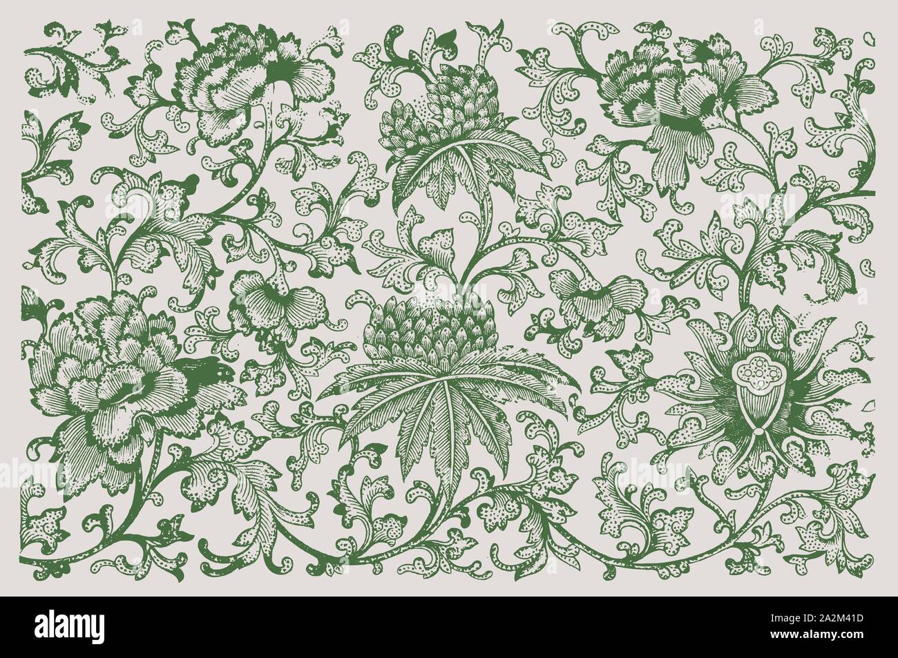 Historic chinese ornamental floral pattern. Dark green colored illustration after a 19th century etching. Editable in layers Stock Vector Image & Art - Alamy