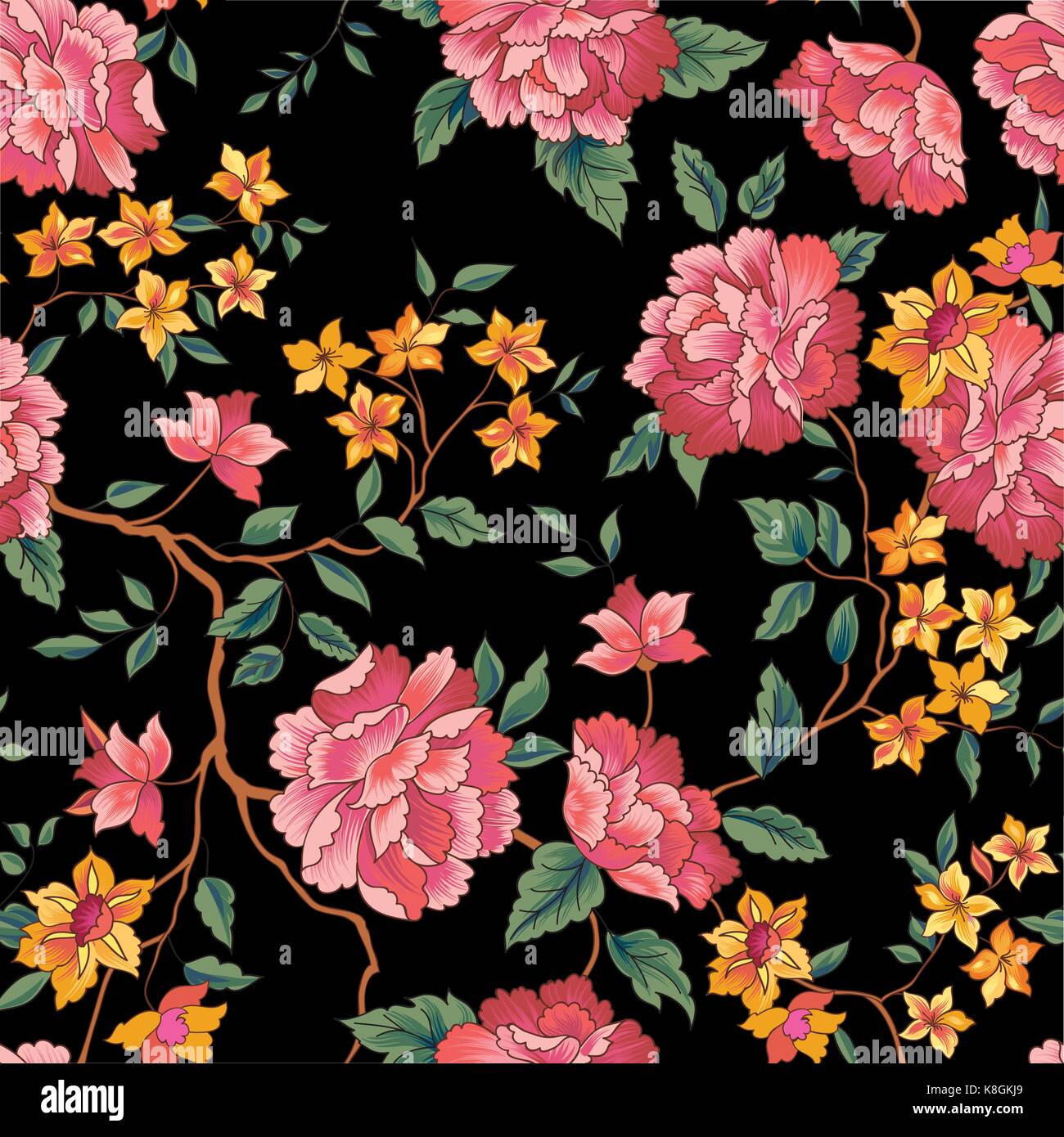 À motif floral de style de broderie chinoise. fleur seamless background. s'épanouir le jardin d'ornement Image Vectorielle Stock - Alamy