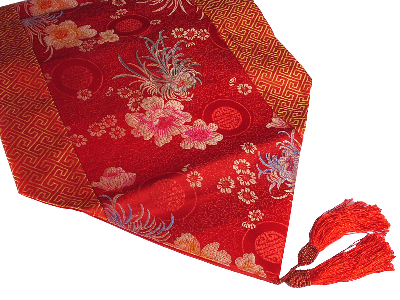 Red and Gold Lucky Floral Motif Chinese Table Runner