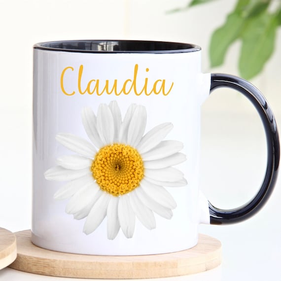 Tasse de marguerite, tasse de marguerite de nom personnalisé, cadeau de marguerite de nom personnalisé pour
