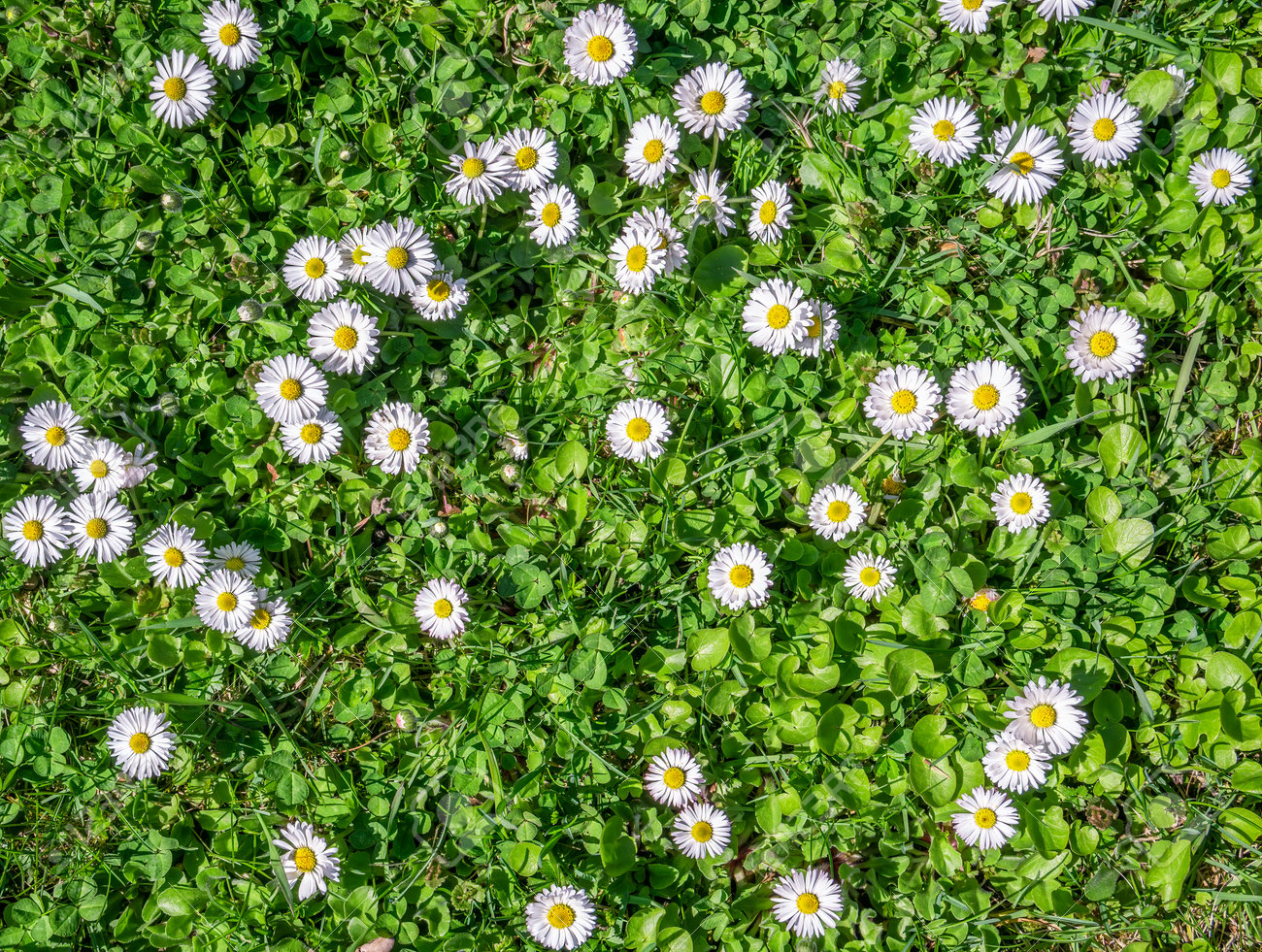 Un Champ Plein De Bellis Perennis Également Connu Sous Le Nom De Marguerite Commune, Marguerite De Pelouse Ou Marguerite Anglaise. Banque D'Images et Photos Libres De Droits. Image 169046116