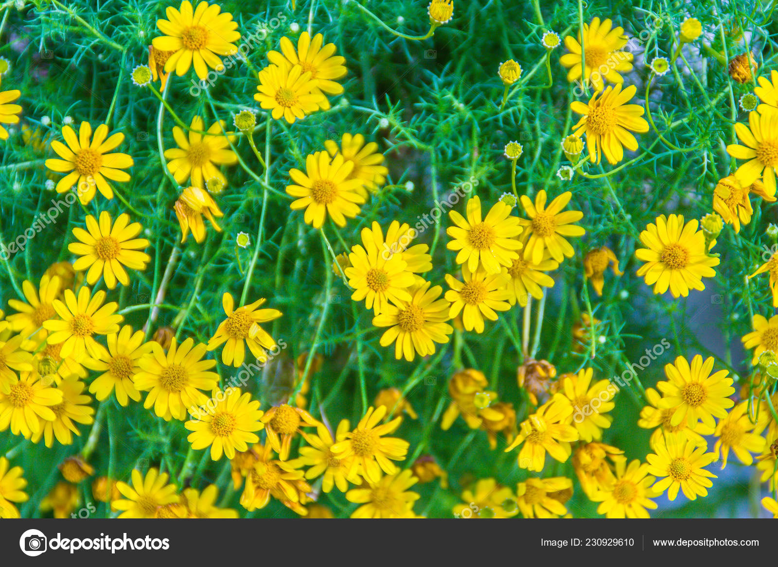 Fleurs De Marguerite Jaune Ou D'euryops Pectinatus également Connues Sous Le Nom De Fleurs De Feuilles Grises Ou D'étoiles Argenté Photo stock - Image du centrale, fermer: 215363288