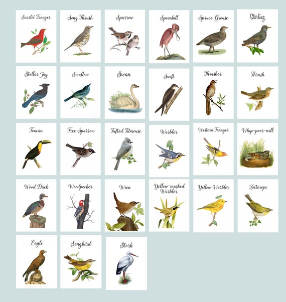 Tarjetas de mesa de pájaros con nombres de pájaros, tarjetas de mesa de boda, ilustraciones de pájaros vintage, tema de pájaros, tiendas de campaña, - Etsy España