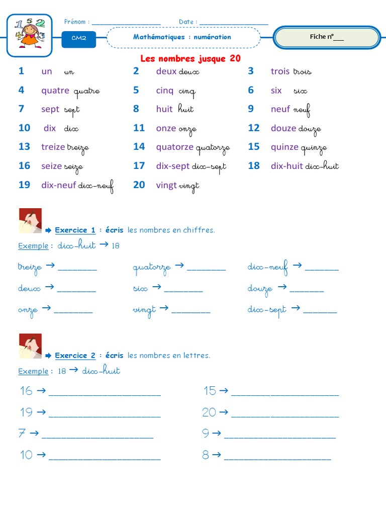 Les nombres de 1 à 20 Language: French Grade/level: 5º School subject: Français Langue Étrangère (FLE) Main content:… | French worksheets, School subjects, Workbook