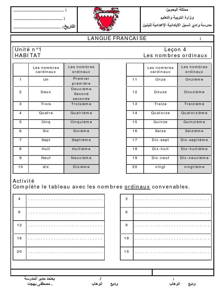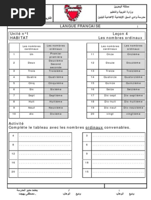 FRANÇAIS .Fiche A1.Les nombres ordinaux/Les nombres cardinaux | PDF
