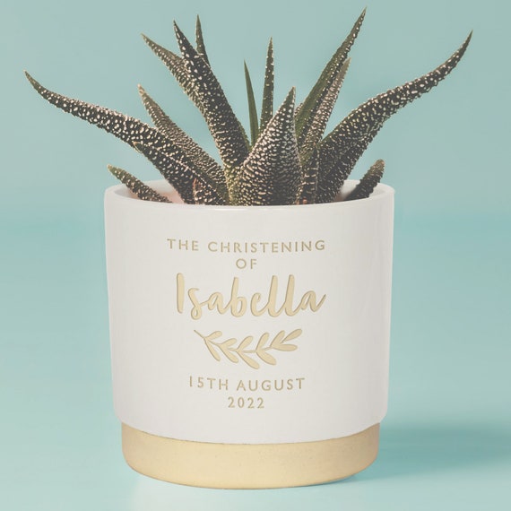 Pot de fleurs d'intérieur de baptême personnalisé un cadeau unique sur mesure pour un baptême ou une cérémonie, nom de votre choix et message personnel - Etsy France