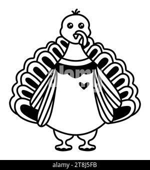 Cute cartoon noir et blanc jour de Thanksgiving dinde rôtie vector ...