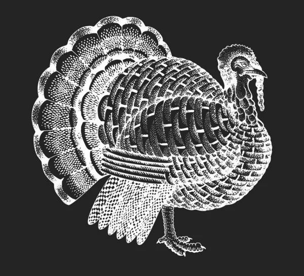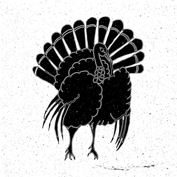 Dinde. Impression rétro vintage, dessin de dinde blanc noir ...