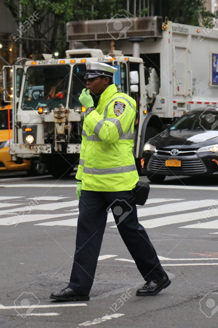 NEW YORK, 6 JUIN 2017: Officier De Police Chargé Du Contrôle De La Circulation De La Police De New York À Manhattan Banque D'Images et Photos Libres De Droits. Image 94784181