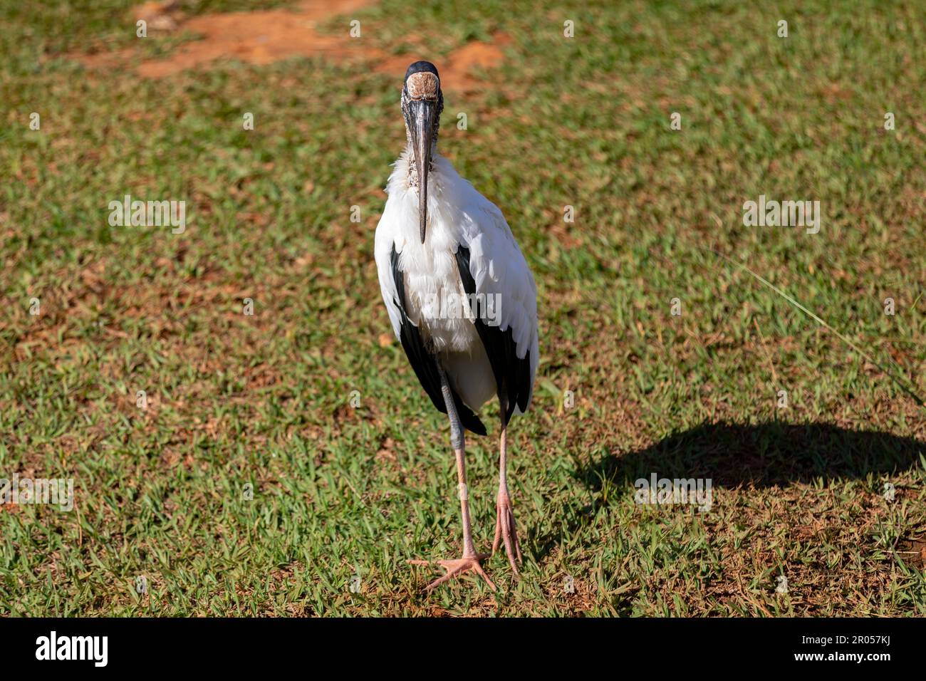 L'oiseau de Jabiru (Mycteria americana) qui marche à travers l'herbe avec ses ailes s'étaler. L'oiseau le plus laid du monde. 'Cabeça sêca'Portrait Photo Stock - Alamy