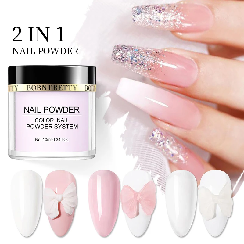 BORN PRETTY – poudre acrylique pour extensions d'ongles, blanc clair, rose, sculpture de fleurs, poussière puissante, manucure, Nail Art, décoration à paillettes