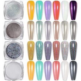 Ensemble de poudre Glitter holographique Set | 6 paillettes Nail ...