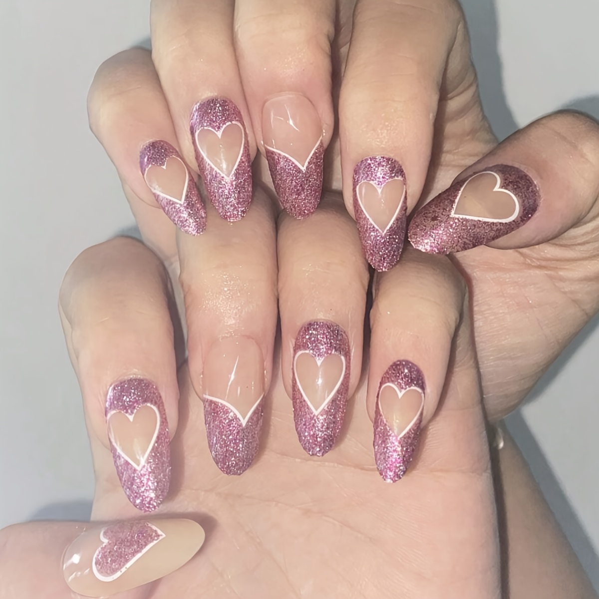 Ensemble De 10 Pièces D'ongles Pressés À La Main En Forme D'amande, Avec Des Paillettes Fines, Des Faux Ongles En Poudre, Avec Un Design De Strass Carré, Des Ongles En Acrylique Brillants Avec Des ...