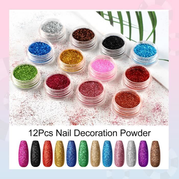 Ensemble de poudre Glitter holographique Set | 12 paillettes Nail ...