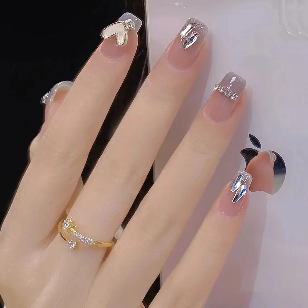 Faux Ongles Courts en Forme de Cercueil, Rose Nude, avec Strass 3D, à Pression, en Acrylique, pour Fille et Femme, N64.24 Pièces - AliExpress