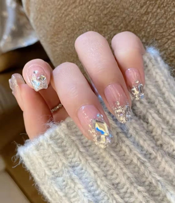 Presse nue sur les ongles avec strass, jolie presse sur les ongles - Etsy France