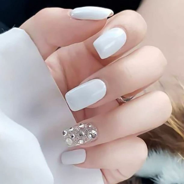KSCD Appuyez sur les ongles Ongles en acrylique de longueur moyenne Ongles blancs Faux ongles avec strass Design (cristal) Cristal - Walmart.ca