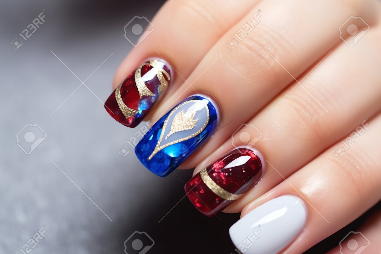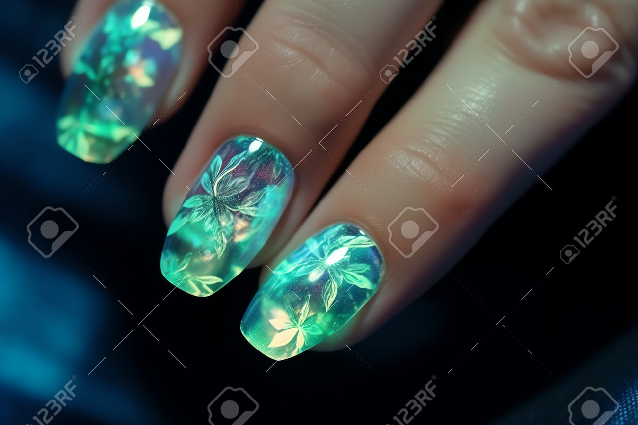 Art D'ongle Acrylique Sculpté Scintillant Ai Génératif Avec Vernis Gel Et Strass Précieux Banque D'Images et Photos Libres De Droits. Image 208126139
