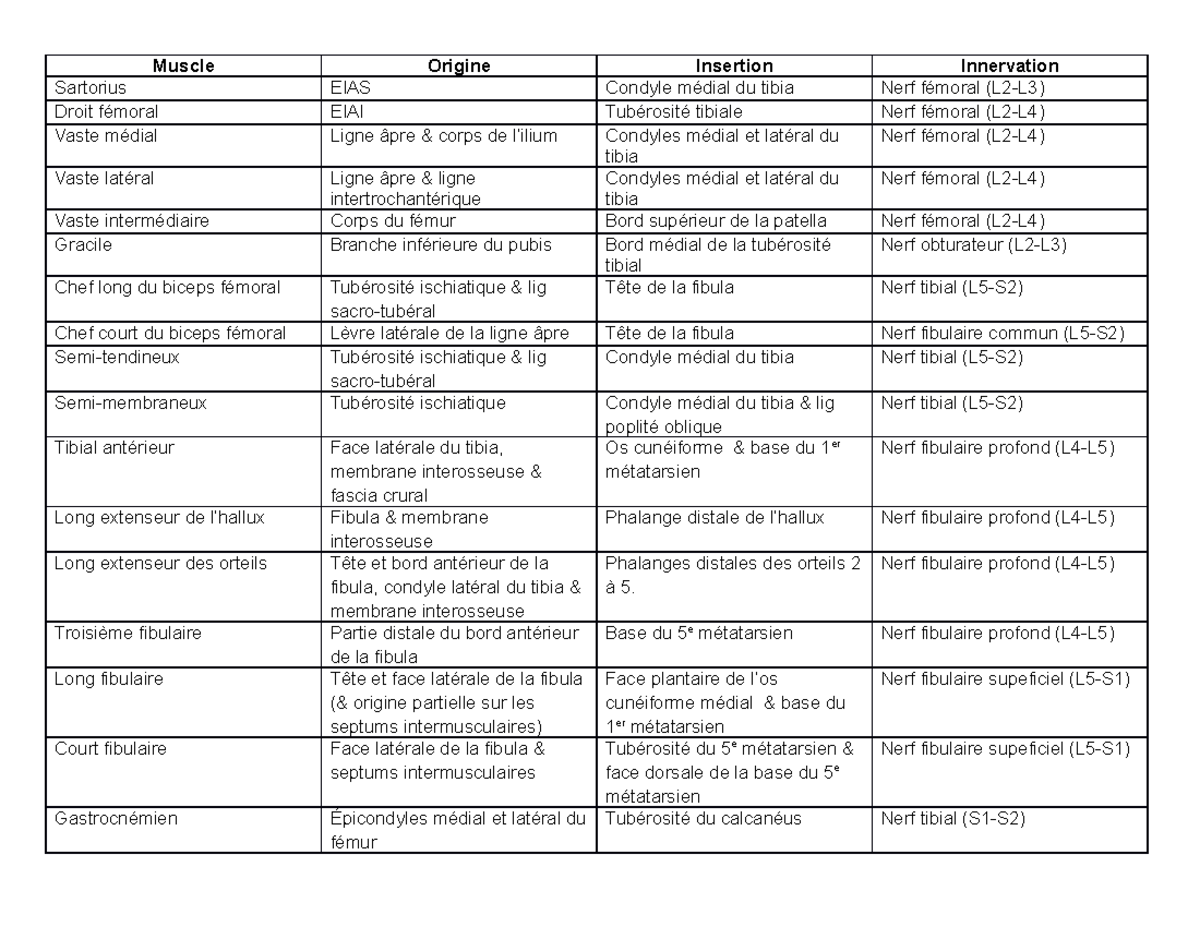 Résumé des origines & insertions des muscles de la jambe et du ...