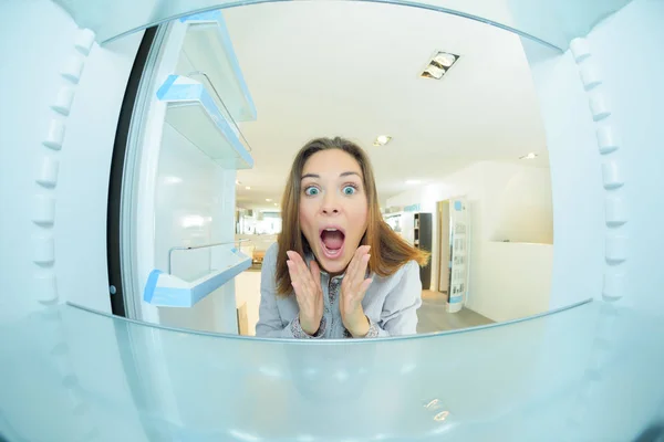 Femme D'ouvrir La Porte De Son Frigo Vide Et Regarder À L ...