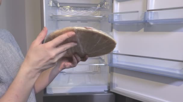 Ouvrir et fermer la porte d’un réfrigérateur vide. Rien à manger ou un régime strict. Clip Vidéo 1212589073