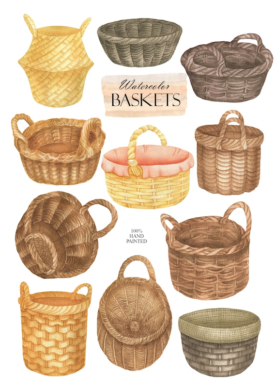 Panier panier numérique Clipart Clip Art Images panier en osier tissage panier bambou panier paniers Clipart en bois avec poignée Image graphique PNG - Etsy France