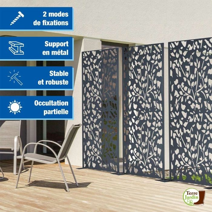 Panneau décoratif extérieur métal - brise vue motif feuilles - visserie incluse - dim. 122L x 45l x 198H cm - acier thermolaqué noir - Accessoires mobilier de jardin - Achat & prix | fnac
