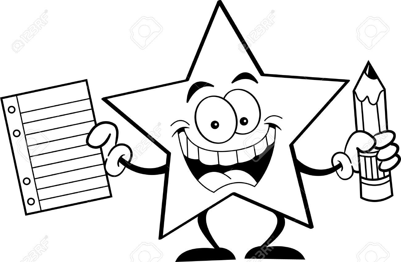 Illustration En Noir Et Blanc D'une Étoile Tenant Un Crayon Et Du Papier Clip Art Libres De Droits, Svg, Vecteurs Et Illustration. Image 20778900