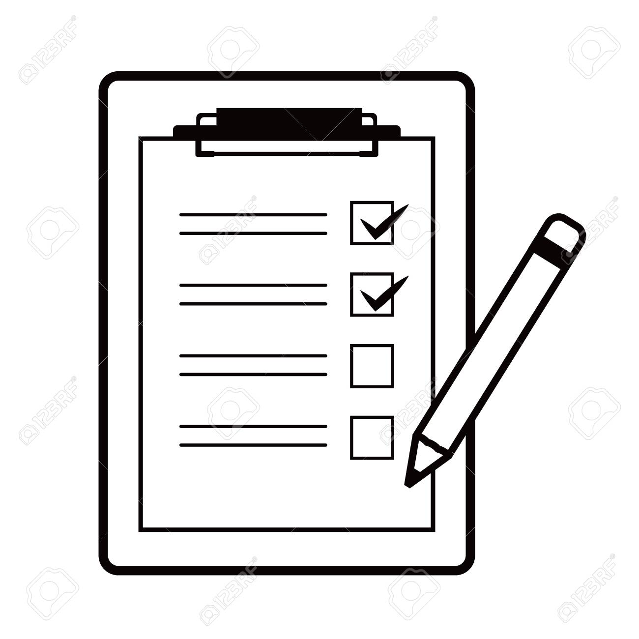 Un Simple Presse-papiers Et Un Crayon. Liste De Contrôle. Dessin Au Trait Noir Et Blanc Clip Art Libres De Droits, Svg, Vecteurs Et Illustration. Image 151758669