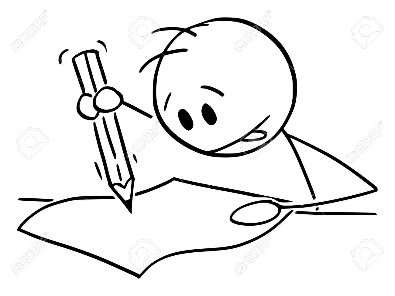 Dessin au trait garçon écrivant sur papier avec crayon illustration vecteur dessiné à la main isolé sur fond blanc 7768617 Art vectoriel chez Vecteezy