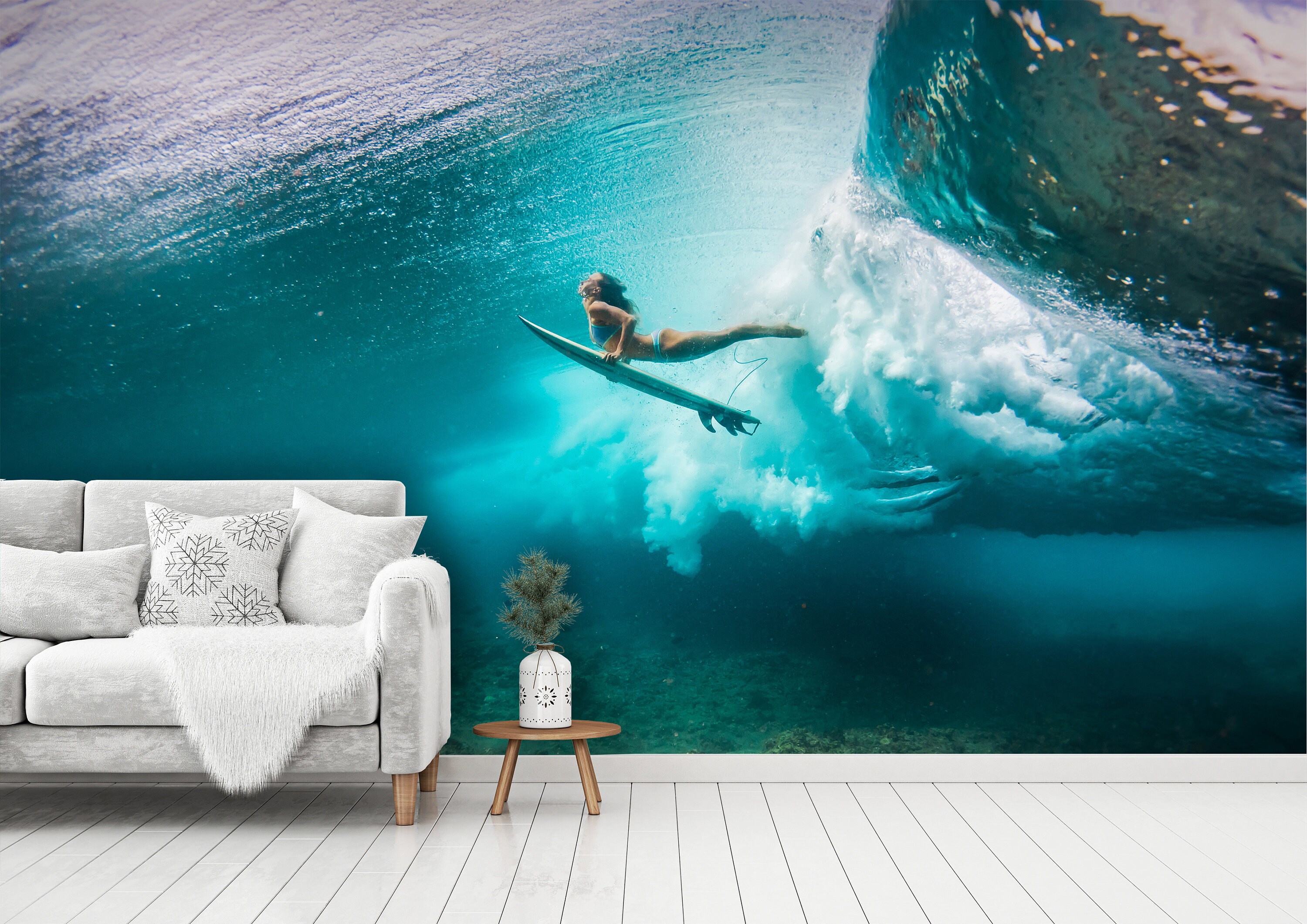 Papier Peint Lavable Vague de l'océan bleu - Nikkel-Art.fr