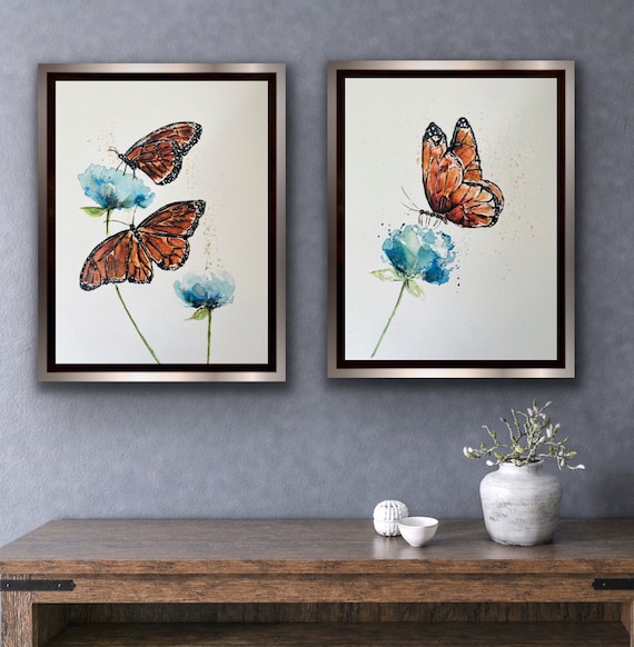 Bleu rouleau déco papillon monarque impression murale, Art ...