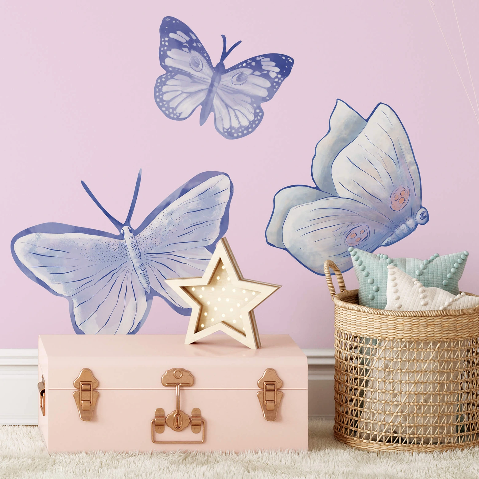 Sticker mural Papillons dessinés à la main lilas/bleu 3 ...
