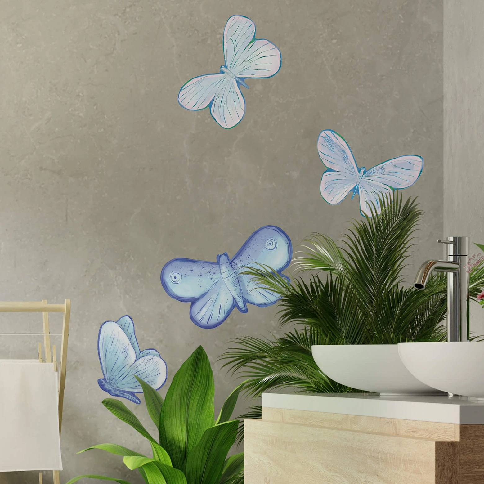 Sticker mural Papillons dessinés à la main violet-bleu 4 ...