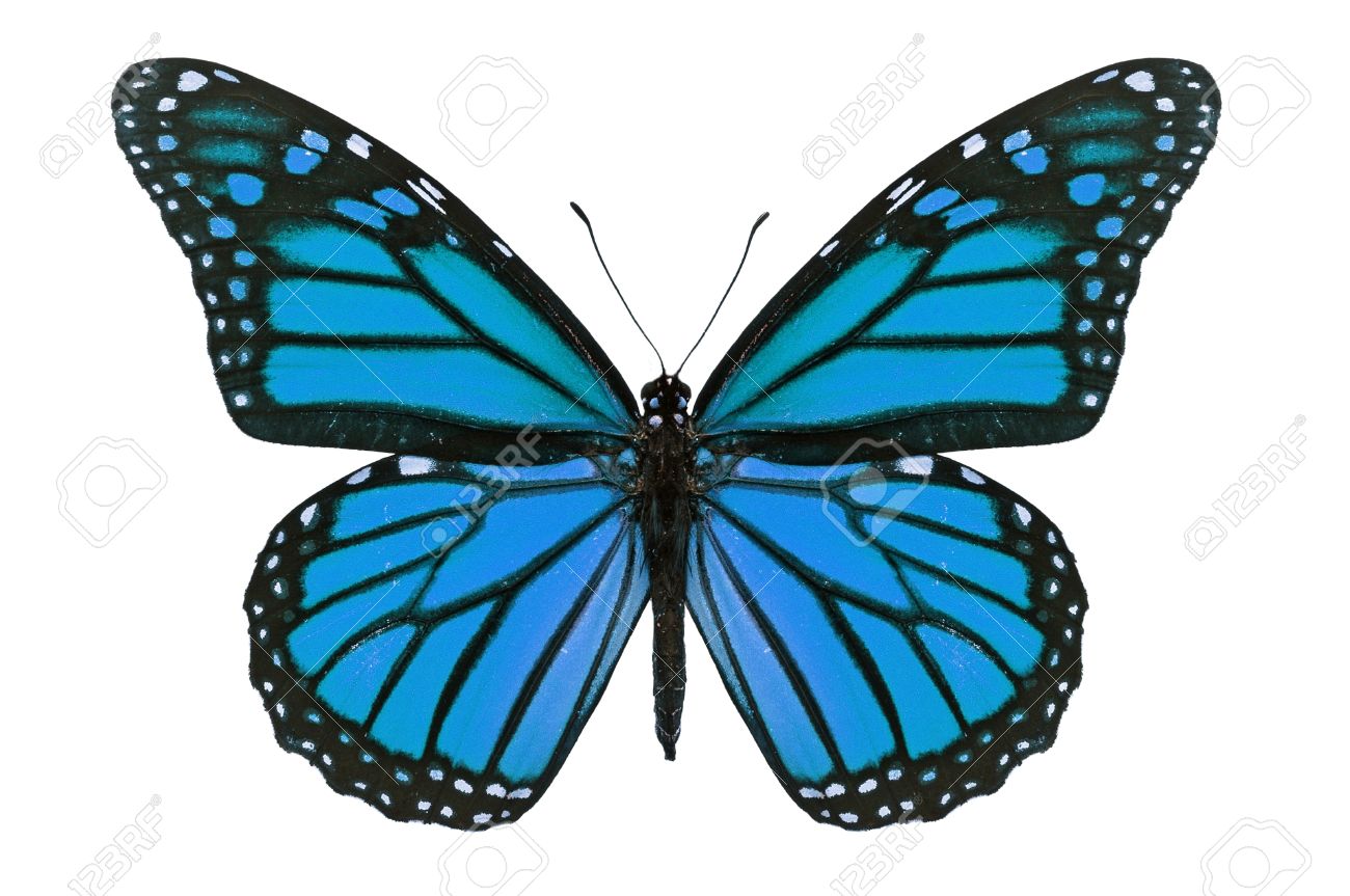 Bleu Papillon Monarque Isolé Sur Fond Blanc. Banque D'Images ...