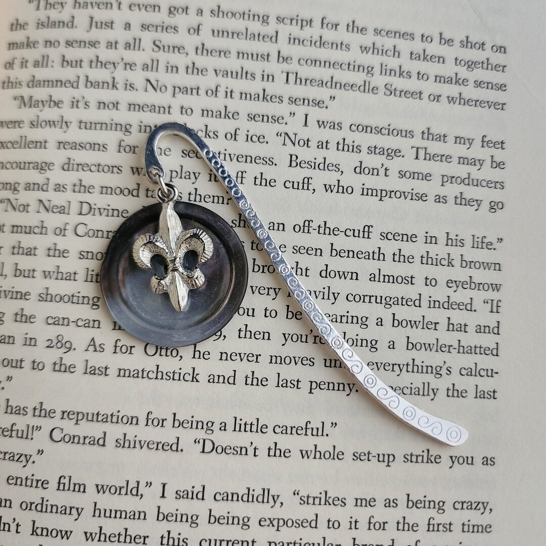 Delicate Silver Tone Bookmark With Fleur De Lis Charm and Vintage Shell Button - Etsy