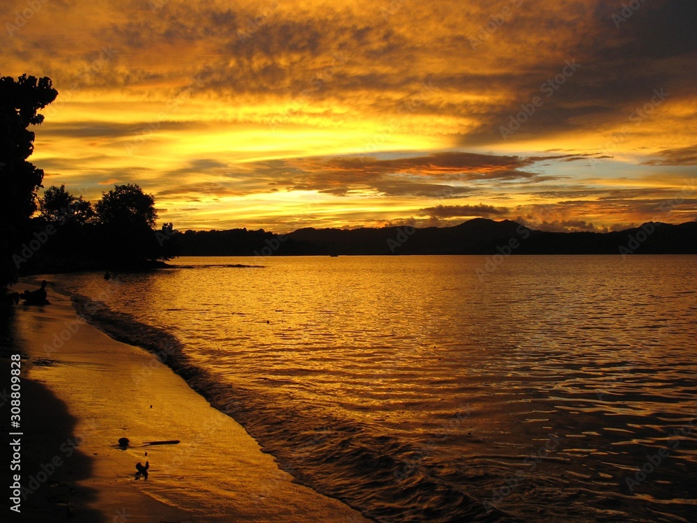 Paysage coucher de soleil plage dans la mer, tirage photographique ...