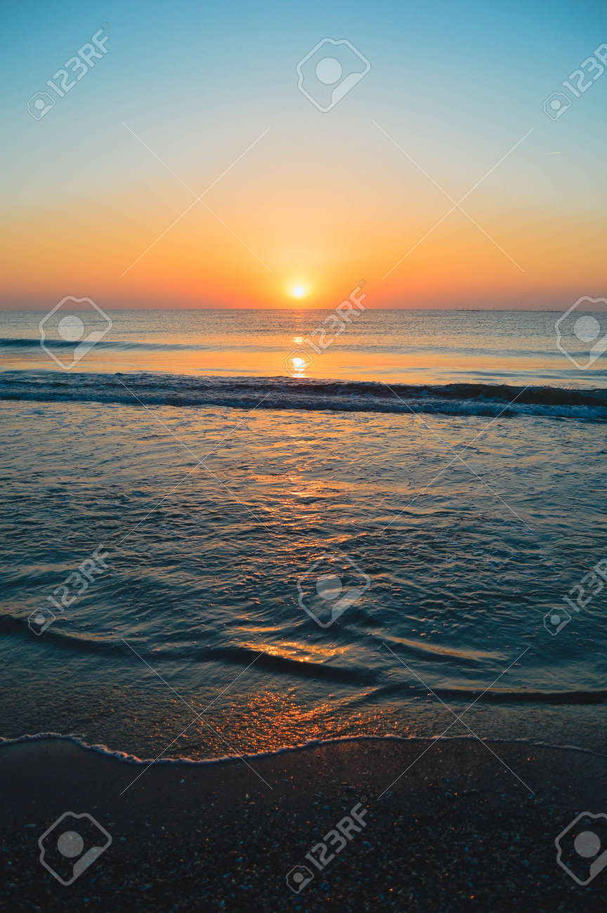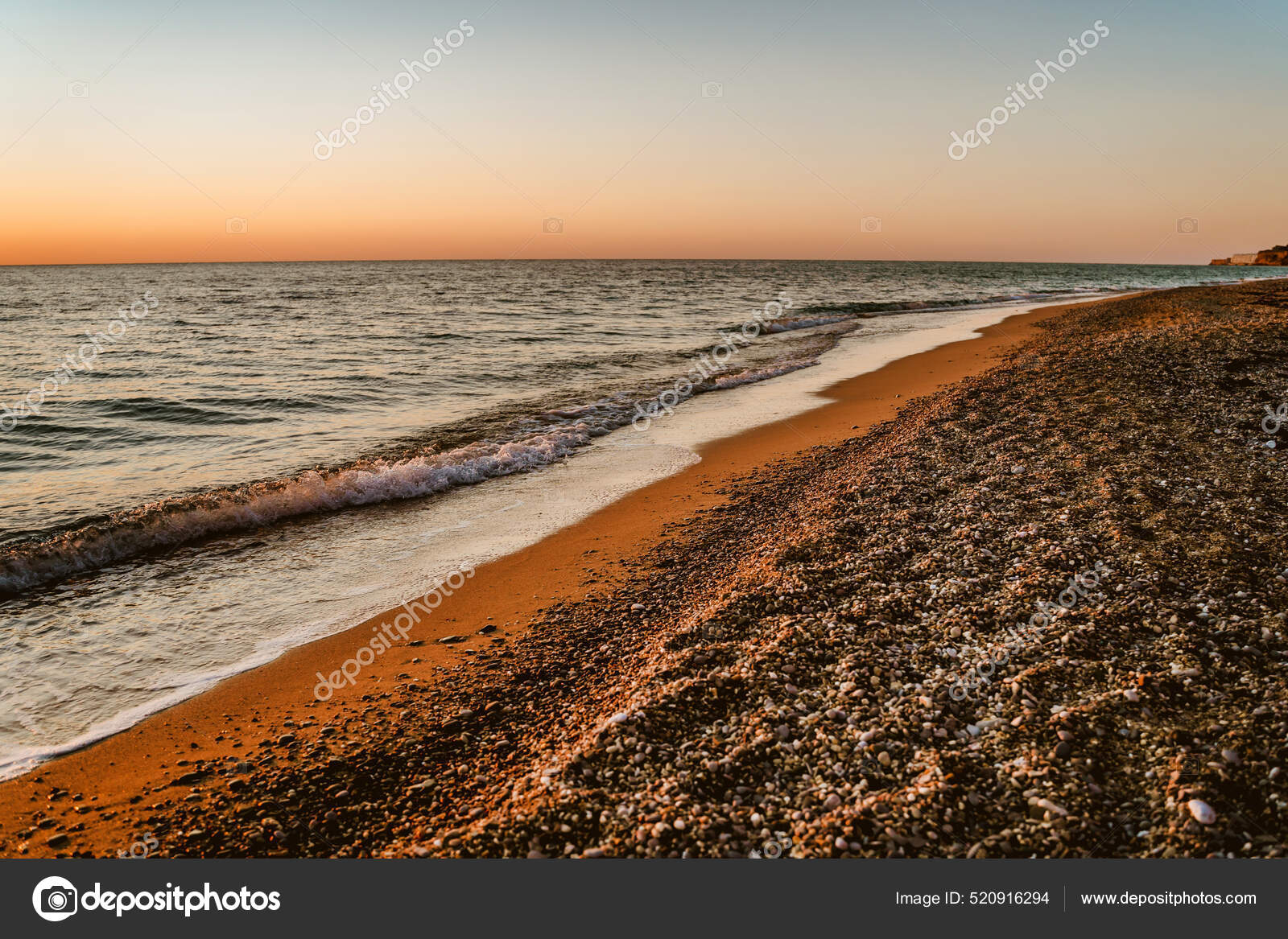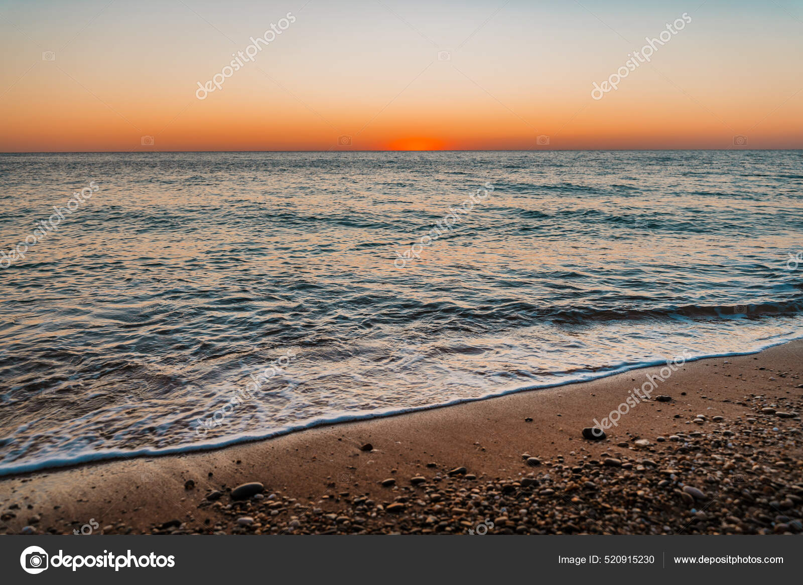 Coucher De Soleil Sur La Plage De La Mer Des Vagues. Paysage D'été ...