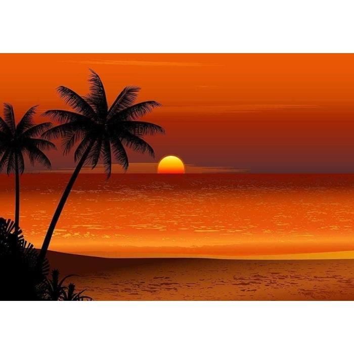 Papier Peint Panoramique Sur Mesure 3D Nature Coucher Soleil Sur La Plage Tropical Paysage Enfant Adulte Poster GeantMural 350x245cm
